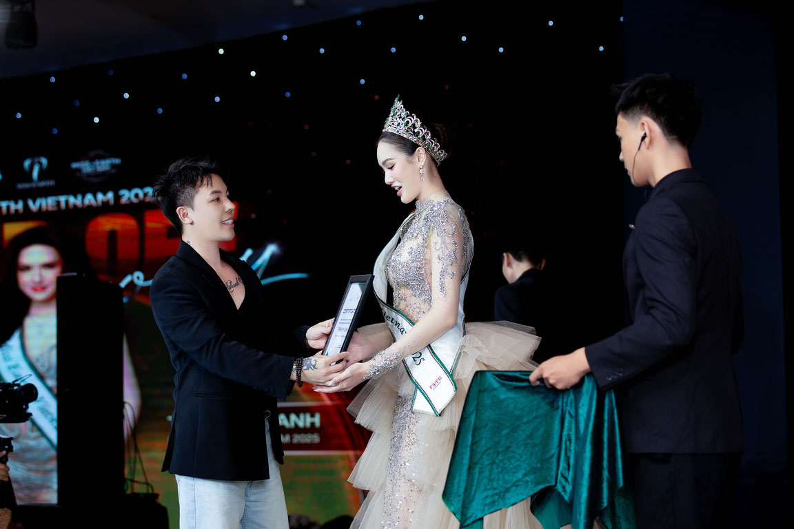 Bước vào phần chính của sự kiện, Trịnh Mỹ Anh khéo khoe sắc vóc quyến rũ cùng thiết kế của Joli Poli. Tại đây, Ông Phạm Duy Khánh – Ủy Viên Ban Chấp Hành Hội Người Mẫu Việt Nam – Đạo diễn – Nhà Sản Xuất – CEO Five 6 Entertainment đã trao Sash – chứng nhận – Vương Miện chính thức cho Trịnh Mỹ Anh – đại diện của Việt Nam tại Miss Earth 2025.