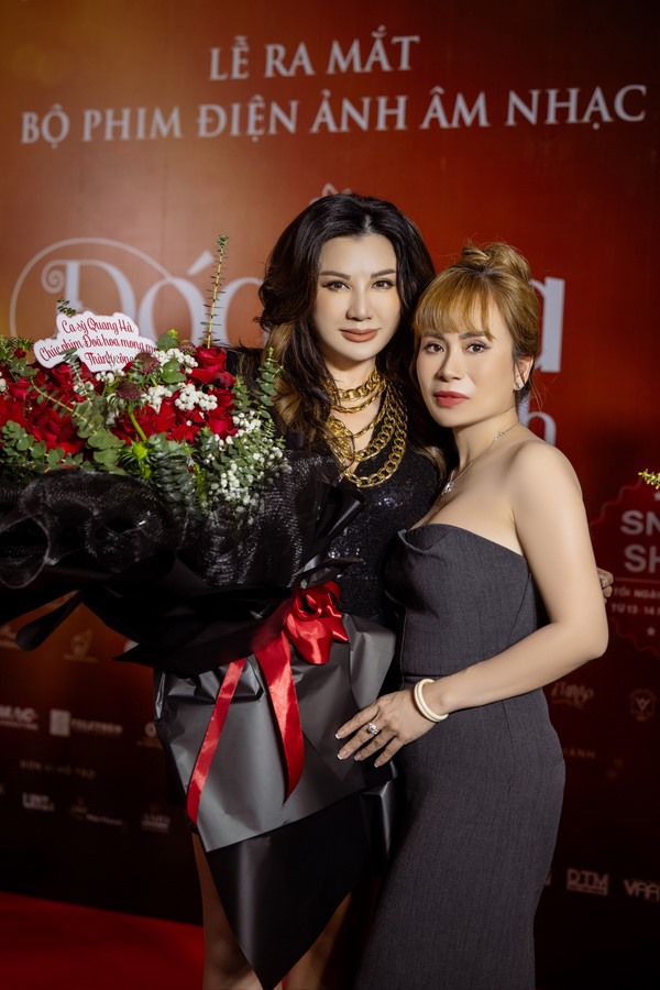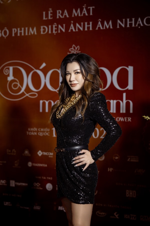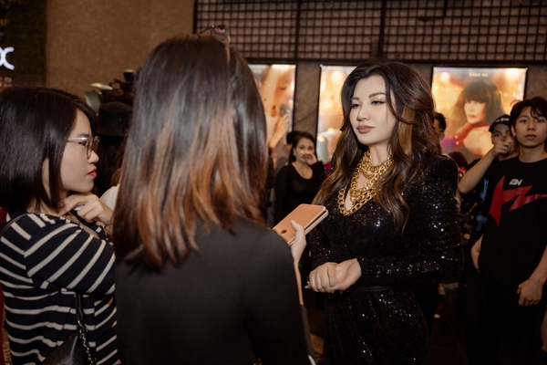 Tại sự kiện, Trizzie Phương Trinh sắc vóc mặn mà ở tuổi 57. Nữ ca sĩ xúc động khi nhận những lời khen từ đồng nghiệp, bạn bè dành cho phim “Đóa hoa mong manh”.