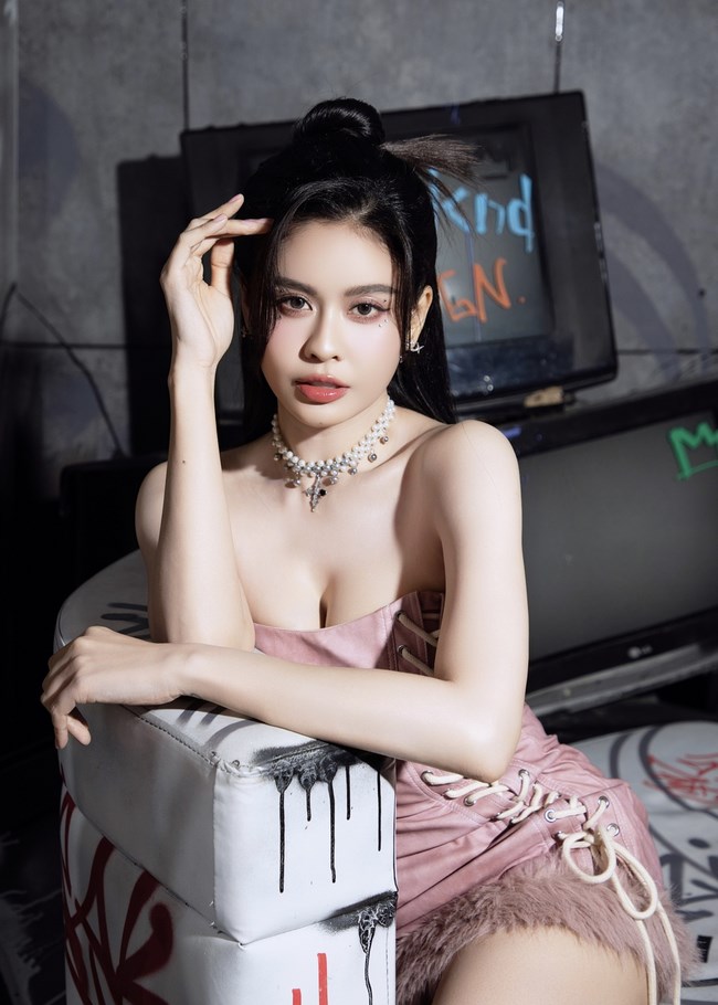 Cô diện chiếc đầm hở ngực quyến rũ với tông màu hồng nữ tính, khoe trọn vóc dáng hoàn hảo. Sở hữu làn da trắng hồng cùng gương mặt thanh tú, Trương Quỳnh Anh luôn nhận được nhiều lời ngợi khen từ khán giả mỗi khi xuất hiện.
