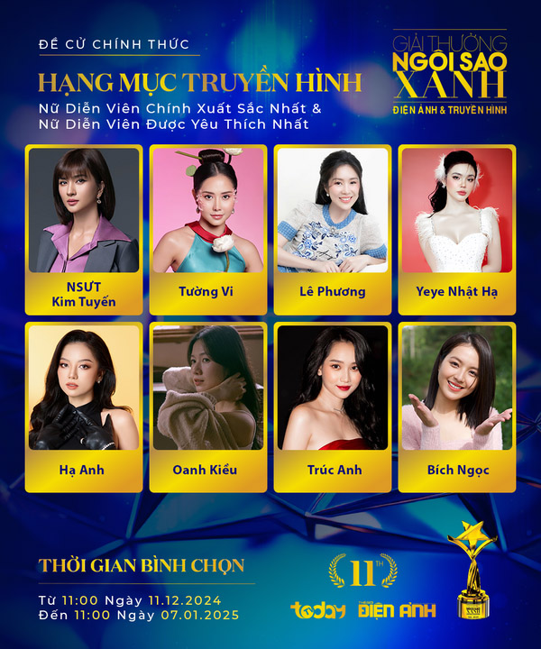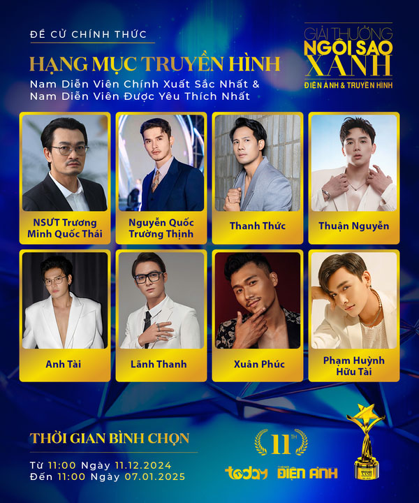 Ở giải Nam/Nữ diễn viên chính xuất sắc nhất và Nam/Nữ diễn viên được yêu thích nhất Ngôi Sao Xanh lần thứ 11, lộ diện danh sách đề cử toàn những tên tuổi ‘cộm cán’ nhẵn mặt trên màn ảnh nhỏ, được đông đảo khán giả biết tới như: NSƯT Trương Minh Quốc Thái, NSƯT Kim Tuyến, Lê Phương, Tường Vi, Nguyễn Quốc Trường Thịnh, Thuận Nguyễn, Anh Tài, Yeye Nhật Hạ, Lãnh Thanh, Thanh Thức, Oanh Kiều, Hạ Anh, Trúc Anh, Xuân Phúc, Phạm Huỳnh Hữu Tài,… Có thể thấy, sự đối đầu đầy căng thẳng của hàng loạt nam thần và bóng hồng từ màn ảnh nhỏ phía Nam đến phía Bắc quy tụ về đường đua Ngôi Sao Xanh năm nay khiến không khí cuộc tranh tài trở nên sôi động hơn bao giờ hết.