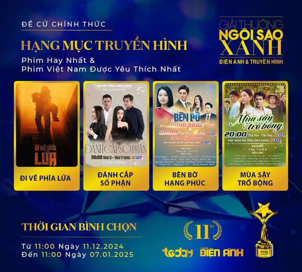 Như vậy, những cái tên nổi bật nhất của đường đua Truyền hình tại Ngôi Sao Xanh 2024 đã chính thức được hé lộ trên Fanpage và Website của giải thưởng thu hút đông đảo sự quan tâm từ người hâm mộ, háo hức đếm từng ngày đến lúc mở cổng bình chọn. Vòng bình chọn cho những đề cử được yêu thích nhất sẽ mở cổng từ 11:00 ngày 11/12/2024 đến 11:00 ngày 07/01/2025. Ngôi Sao Xanh 2024 lần đầu ra mắt và sử dụng nền tảng bình chọn trực tuyến mới với công nghệ hiện đại, được thế kế bởi đối tác công nghệ chiến lược Eventista.