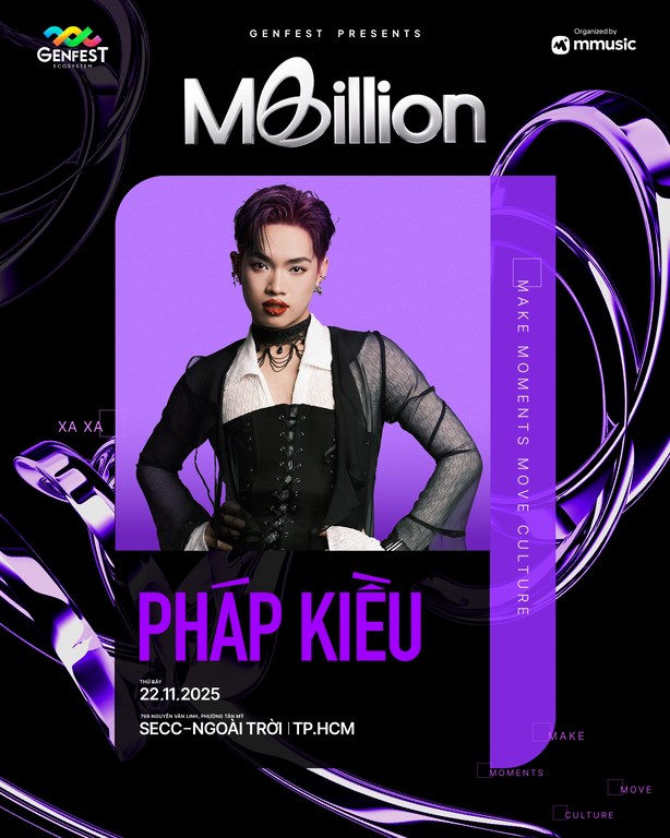 Cùng hệ thống âm thanh, ánh sáng và visual chuẩn quốc tế, MBILLION hứa hẹn trở thành bữa tiệc nghệ thuật hoành tráng, nơi mọi cá tính và tình yêu âm nhạc được tôn vinh đúng với tinh thần “Vũ trụ Âm nhạc Độc bản” mà GENfest theo đuổi.