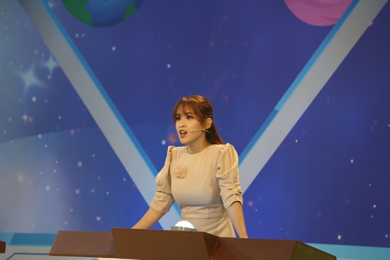 Nữ diễn viên “Cổng mặt trời” luôn tạo điểm nhấn cho mỗi lần xuất hiện trong gameshow, khác hẳn với vẻ nữ tính, nhẹ nhàng bề ngoài.