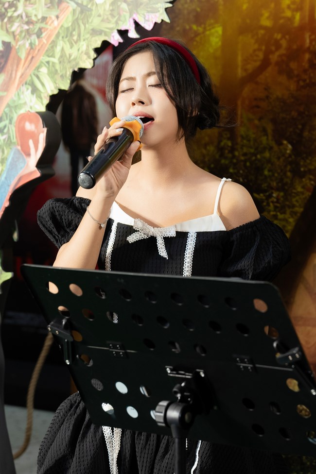Tại sự kiện ra mắt phim Bạch Tuyết, đông đảo truyền thông và khán giả trông đợi bởi sự góp mặt của nhiều nghệ sĩ, diễn viên nổi tiếng trong ngành xuất hiện như ca sĩ – diễn viên Phan Như Thùy, đạo diễn lồng tiếng Đạt Phi… “Bạch Tuyết” phiên bản Việt Đỗ Lê Hồng Nhung gây ấn tượng khi xuất hiện tại thảm đỏ với trang phục váy tone đen thanh lịch và trẻ trung kết hợp cùng phụ kiện tóc tone đỏ khiến khán giả gợi nhớ đến nhân vật mà nữ ca sĩ trẻ đảm nhiệm lồng tiếng. Tại thảm đỏ, Đỗ Lê Hồng Nhung khiến khán giả hào hứng khi khoe giọng hát ngọt ngào, trong trẻo với ca khúc “Waiting On The Wish” – nhạc phim của Nàng Bạch Tuyết.