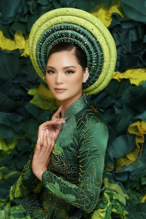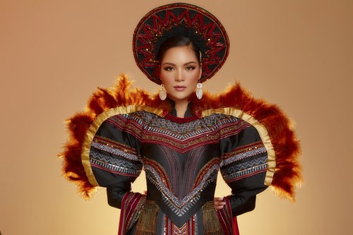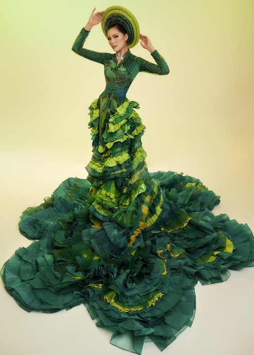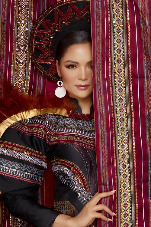 Bộ National Costume thứ hai được lấy ý tưởng từ văn hóa thổ cẩm trên trang phục của con người vùng đất Tây Nguyên, kết hợp đan xen là hình ảnh của những chiếc trống đồng Đông Sơn.