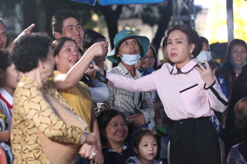 Cùng lúc này, Nguyễn Hồng Sơn vừa xuất hiện trên sân khấu, Việt Hương liền chớp lấy cơ hội, ôm chầm lấy cựu danh thủ để thể hiện tình cảm của mình dành cho thần tượng. Chưa dừng lại ở đó, Việt Hương còn kiếm cớ thay mặt khán giả Cần Thơ, để hôn má nam danh thủ.