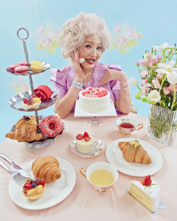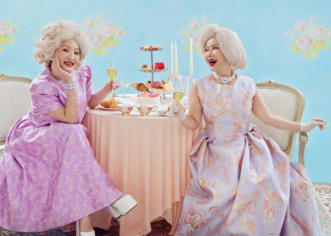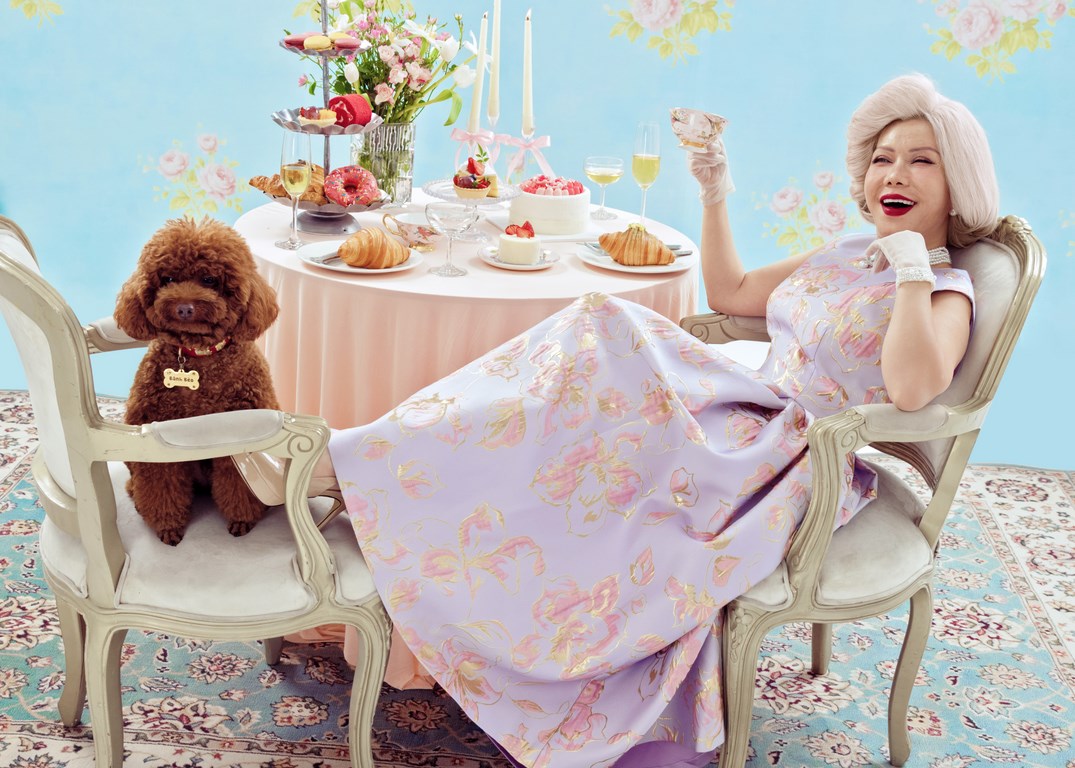 Bộ ảnh được thực hiện trong bối cảnh mô phỏng không gian tiệc trà châu Âu cổ điển, nơi những chiếc bàn phủ khăn pastel, ly tách sứ, hoa tươi, bánh ngọt và champagne cùng tạo nên bức tranh tinh tế, ngọt ngào.