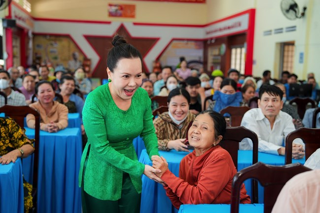 Tại buổi trao quà, vợ chồng Việt Hương và các tình nguyện viên đã trực tiếp gửi tận tay bà con, tạo nên bầu không khí ấm áp, chan hòa. Nhiều người dân xúc động khi nhận được sự quan tâm kịp thời từ chương trình. Đồng thời, không ít bà con hào hứng chụp hình lưu lại hình ảnh kỷ niệm cùng Việt Hương – Hoài Phương, lan tỏa bầu không khí vui vẻ, tích cực.