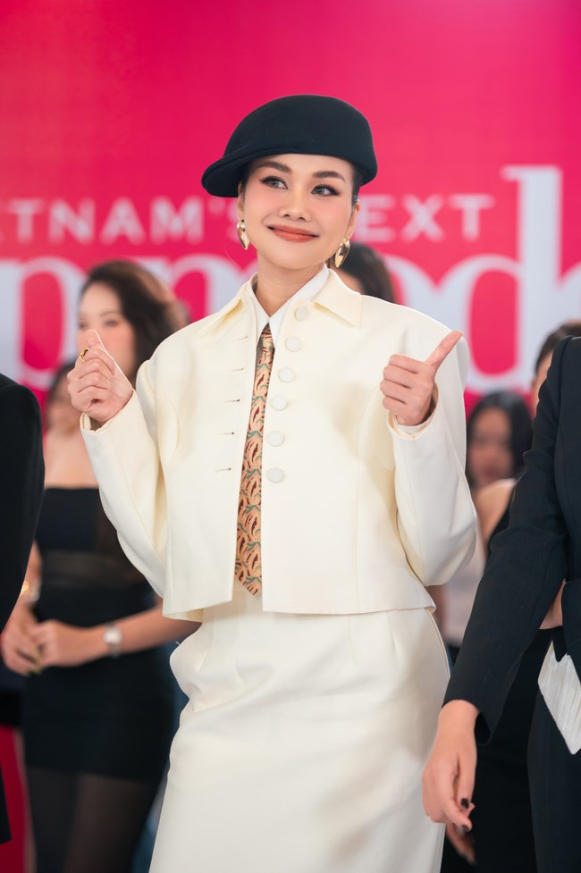 Siêu mẫu Thanh Hằng – biểu tượng thời trang và “chị đại” của làng mẫu Việt – chính thức trở lại ghế Host, mang theo khí chất sắc sảo, kinh nghiệm dày dạn và sức hút không thể chối từ. Tại buổi casting, cô ghi điểm tuyệt đối với bộ suit trắng thanh lịch, kết hợp phụ kiện vàng gold, mũ beret và cà vạt họa tiết, toát lên vẻ sang trọng nhưng vẫn thời thượng.