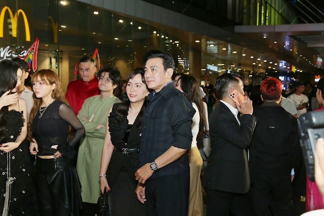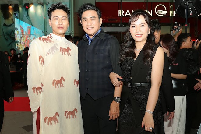 Ông trùm phim Bụi Đời Chợ Lớn thu hút sự chú ý từ khán giả khi sánh đôi cùng bà xã Uyên Phương trong buổi ra mắt phim điện ảnh mới tại TP.HCM. Cả hai vợ chồng diện trang phục sắc đen đơn giản nhưng nổi bật bởi nhan sắc trẻ đẹp trên thảm đỏ. Họ gặp từng đồng nghiệp thăm hỏi và chúc mừng những diễn viên tham gia vai diễn trong phim.