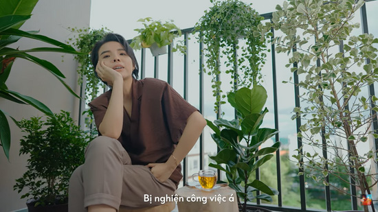 Chọn khung cảnh là ban công của ngôi nhà đầu tiên do chính tay mình mua được sau 10 năm miệt mài hoạt động nghệ thuật, Vũ Cát Tường tận hưởng cảm giác tự do trong một buổi chiều thảnh thơi, không bị những lịch trình show diễn “bủa vây” như mọi khi. Đó cũng là lúc mà tác giả Tìm Hành Tinh Khác nói về câu chuyện “Dừng lại để nhìn lại”.