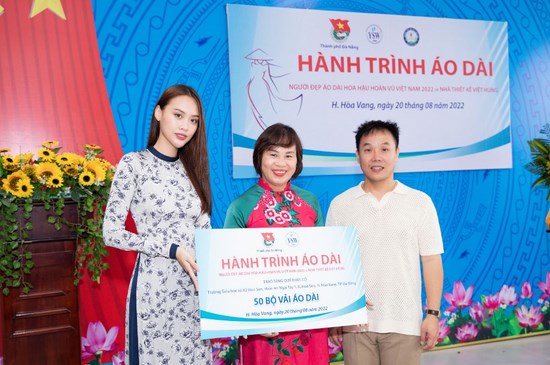 Cùng NTK Việt Hùng, Người đẹp Áo dài Hoa hậu Hoàn vũ Việt Nam 2022 Đặng Hoàng Tâm Như đã mang những phần quà là Áo dài thật nhiều ý nghĩa để trao tặng cho các cô giáo Trường Tiểu học số 2 Hoà Sơn, Thôn An Ngãi Tây 1, Xã Hoà Sơn, Huyện Hoà Vang, Thành phố Đà Nẵng.