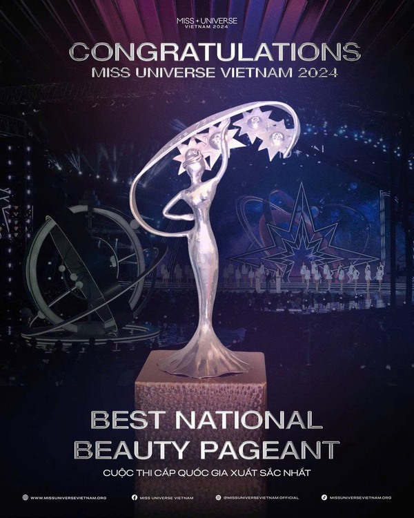 Vượt qua hàng loạt những đơn vị đăng cai và giữ bản quyền Miss Universe cấp quốc gia uy tín trên thế giới như Thái Lan, Philippines… Miss Universe Vietnam 2024 – Cuộc thi sắc đẹp khốc liệt hàng đầu Việt Nam do Dược sĩ Tiến đứng ra làm Nhà sản xuất đã chiến thắng tại hạng mục Best National Pageant. Miss Universe Vietnam vốn từ lâu là thương hiệu sắc đẹp hàng đầu không chỉ tại Việt Nam mà còn trên thế giới. Dù từng được nhiều đơn vị nắm giữ bản quyền uy tín và có kinh nghiệm sản xuất, tuy nhiên, phải đến mùa giải Miss Universe Vietnam 2024, Việt Nam mới lần đầu tiên chiến thắng ở hạng mục này.