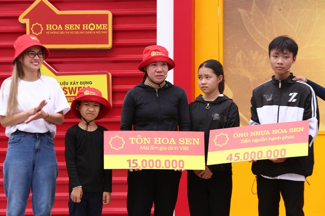 Nhìn ngôi nhà cũ dột, nhà vệ sinh dựng tạm vô cùng bất tiện nên Tập đoàn Hoa Sen quyết định hỗ trợ xây tặng gia đình một nhà vệ sinh, đồng thời lợp lại mái tôn mới. Ngoài phần thưởng trong chương trình, nhà tài trợ luôn mong muốn đồng hành nhiều hơn, góp phần giúp những mảnh đời khó khăn có cuộc sống ổn định hơn.