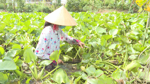 Anh Thơm và chị Mai đều là không có nghề nghiệp ổn định, ai thuê gì làm nấy kể cả những công việc nặng nhọc để có tiền trang trải chi phí sinh hoạt của gia đình và lo cho con cái đang tuổi ăn học. Mấy tháng qua, dịch bệnh kéo dài nên không có việc làm càng khiến cuộc sống của họ thêm bội phần túng thiếu. Nhận thấy không thể chờ hết dịch để đi làm lại, cả hai gia đình đã quyết định chuyển sang nghề thủ công đan lát, đan lục bình để kiếm tiền. Biết rằng công việc này thu nhập chẳng là bao nên họ cố gắng thức khuya dậy sớm, cặm cụi lấy công làm lời để có cái ăn cái mặc, nhất là trang trải nỗi lo bệnh tật cho người thân.