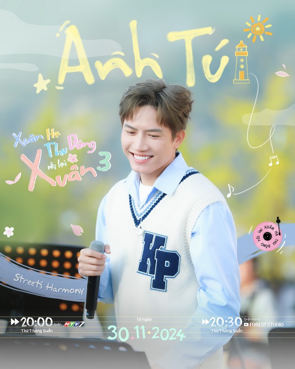 Xuân Hạ Thu Đông, rồi lại Xuân 3 sẽ chính thức lên sóng lúc 20h thứ 7 hàng tuần từ 30/11/2024 trên kênh HTV7 – Đài truyền hình TPHCM và lúc 20h30 trên Youtube FOREST STUDIO.