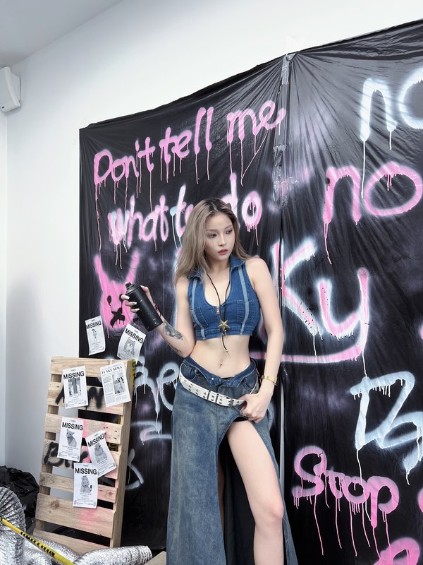 Yee Pink cũng không ngần ngại thử những trang phục sexy, độc đáo để đa dạng hóa phong cách của mình. Outfit từ chất liệu jean được cô mix & match sáng tạo. Áo jean ba lỗ có phần khóa kéo ở giữa rất hòa hợp khi đi kèm mẫu váy jean được cắt xẻ cá tính. Ngoài có gu ăn mặc đẹp, Yee Pink còn khiến người xem thích thú trước khả năng pose dáng chuyên nghiệp và thần thái sang chảnh trên những loạt ảnh được đăng tải.