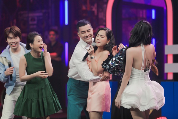Tuy nhiên, đó không phải là lần duy nhất trong tập tuần này bà xã Hứa Minh Đạt thấy ngại ngùng khi giao lưu với đồng nghiệp nam kém tuổi. Vừa xuất hiện trên sân khấu, diễn viên Đoàn Bảo n đã chạy tới ôm đàn chị Lâm Vỹ Dạ cực thân thiết và thân mật khiến cho nữ diễn viên ngượng đỏ mặt. “Chị có gia đình rồi, hãy buông chị ra”, bà xã Hứa Minh Đạt vừa nói vừa ngại ngùng đẩy đàn em ra. Thấy các khách mời khác bất ngờ trước hành động thân thiết của hai chị em, nữ đội trưởng liền cho biết Đoàn Bảo n là người em thân thiết mà cô xem như em út trong nhà.